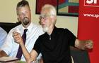 Erhard Eppler (rechts) stellte sein neues Buch in Breisach vor und diskutierte mit dem SPD-Bundestagskandidaten Gernot Erler und dem Publikum über Sprache und Politik. | Foto: benjamin bohn